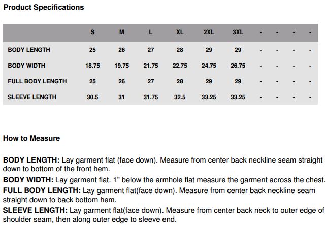 Add $2.00 for 2X-Large; Add $3.00 for 3X-Large;